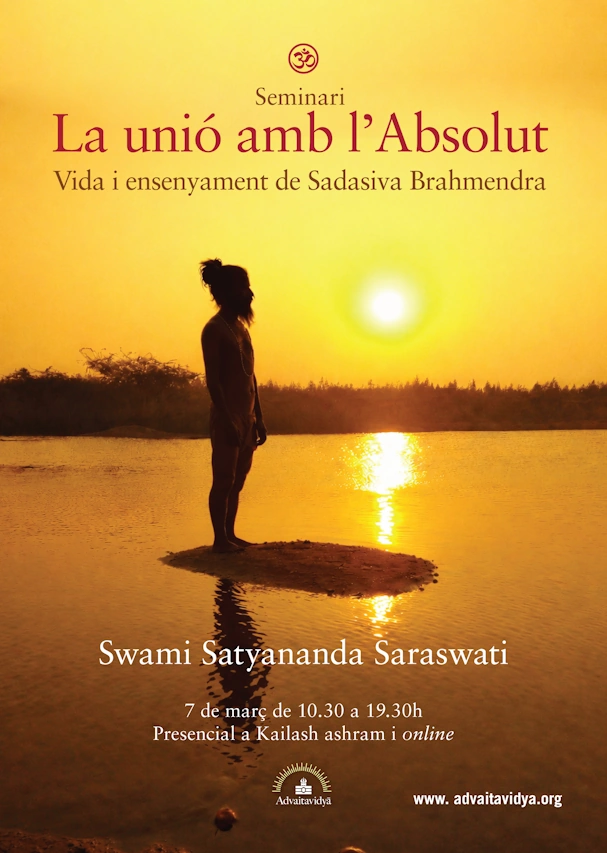 El proper dissabte 7 de març, de 10.30 a 19.30h, impartirà el seminari sobre ” la unió amb l’Absolut. Vida i ensenyament de Sadasiva Brahmendra.”