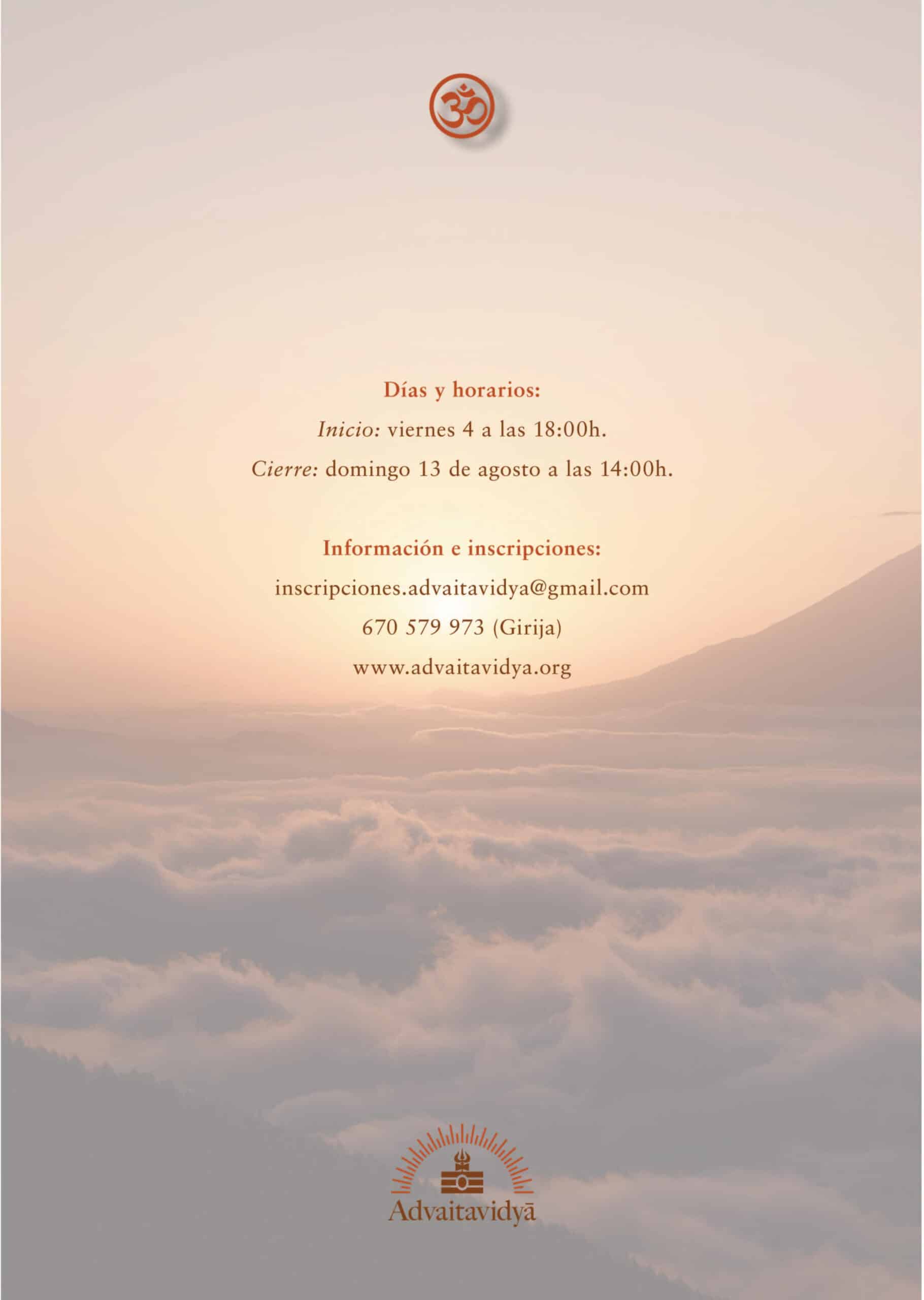 Inscripciones.advaitavidya@gmail.com 670 579 973 (Girija)